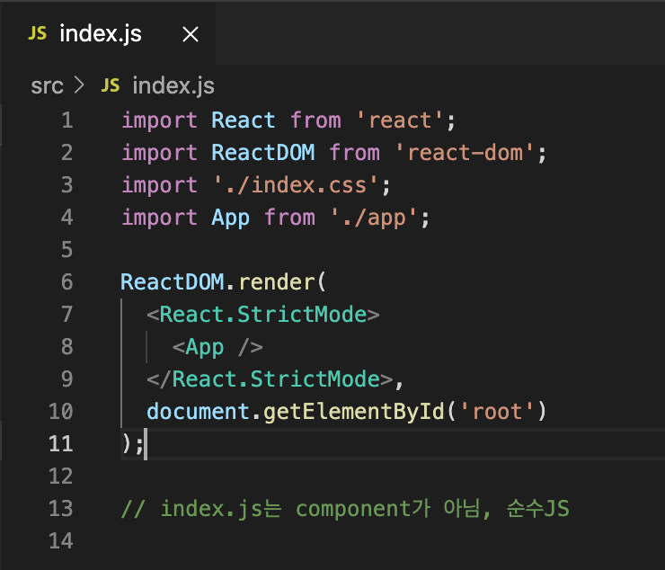 -> 'react-dom' 라이브러리에서 ReactDom 클래스를 가져옴