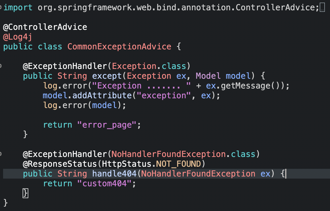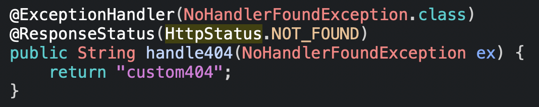 - 500 메시지는 Internal Server Error이므로 @ExceptionHandler를 이용해서 처리되지만, 잘못된 URL을 호출할 때 보이는 404 에러 메시지의 경우는 조금 다르게 처리하는 것이 좋다.