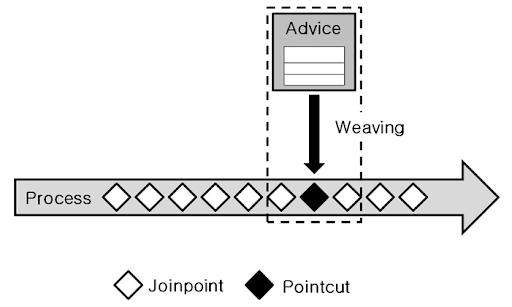 - Aspect는 조금 추상적인 개념을 의미하는데, Aspect는 관심사 자체를 의미하는 추상명사라고 볼 수 있고, Adivce는 Aspect를 구현한 코드이다.