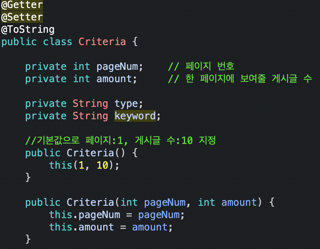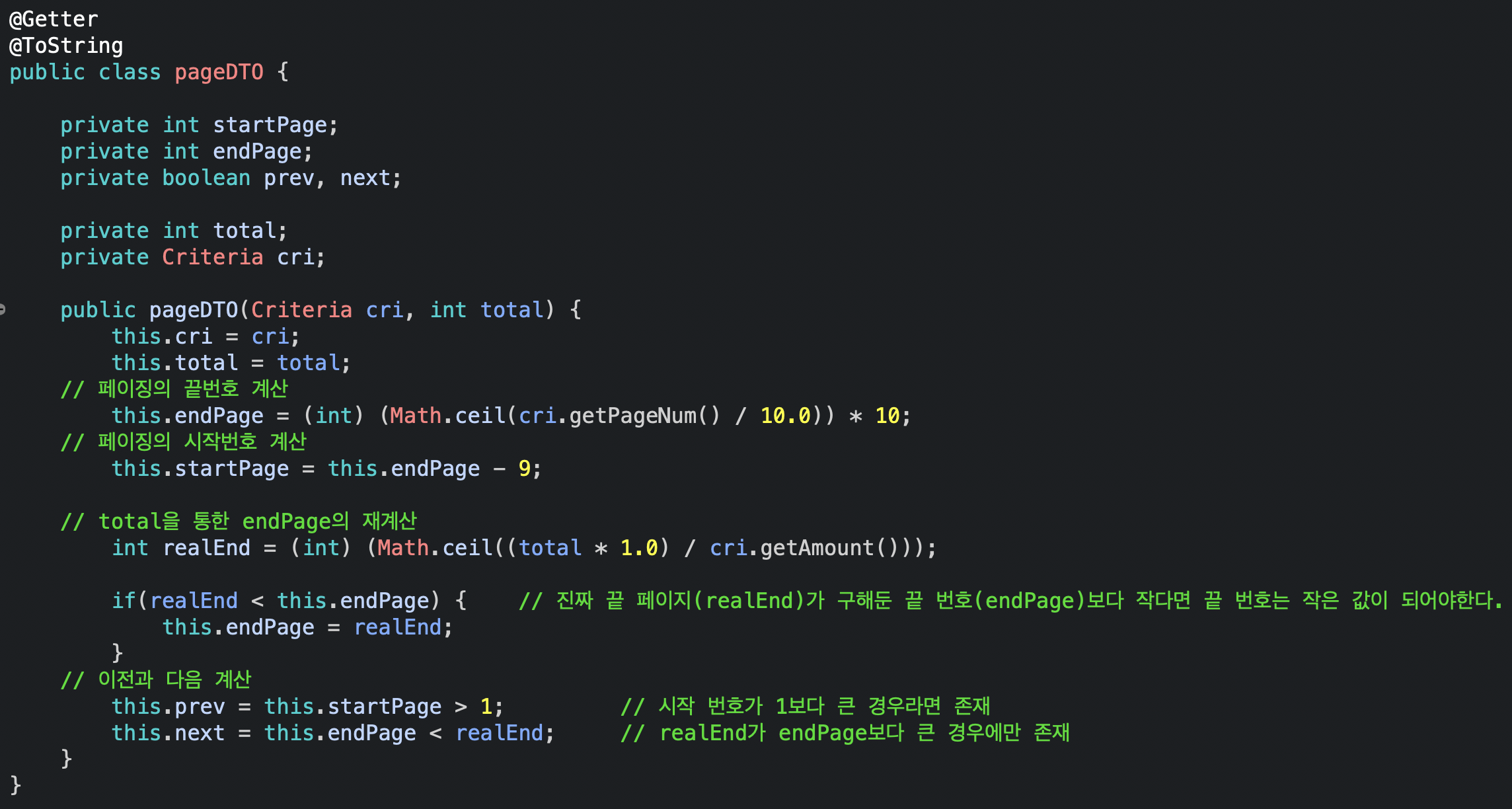 ✓ 페이징 처리할 때 필요한 정보들