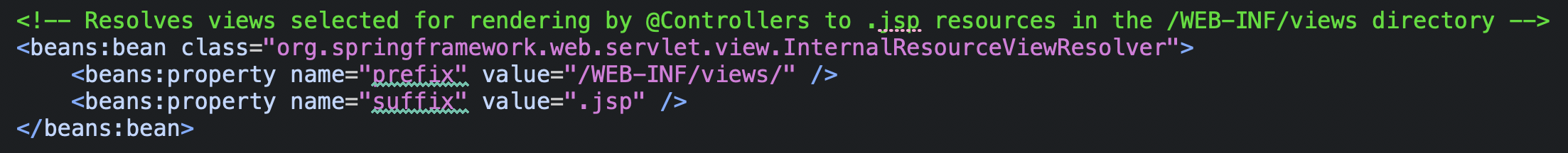 - 가장 흔하게 사용하는 설정은 servlet-context.xml에 정의된 InternalResourceViewResolver이다.