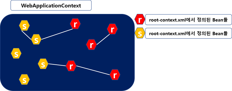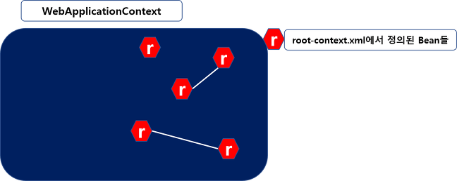 - root-context.xml에 정의된 객체(Bean)들은 스프링의 영역(context) 안에 생성되고, 객체들 간의 의존성이 처리된다.