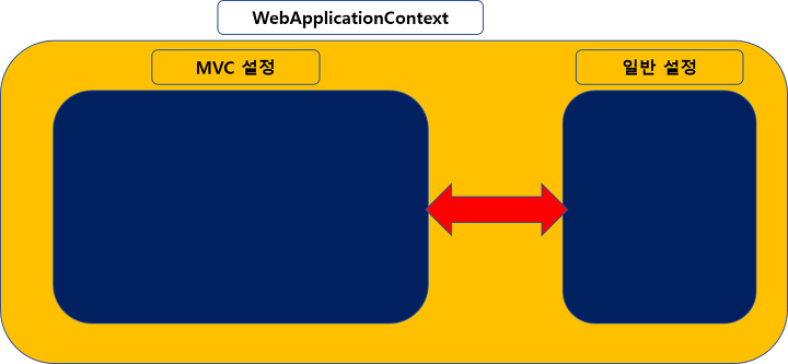 - 바깥쪽에 있는 WebApplicationContext라는 존재는 기존의 구조에 MVC 설정을 포함하는 구조로 만들어진다.