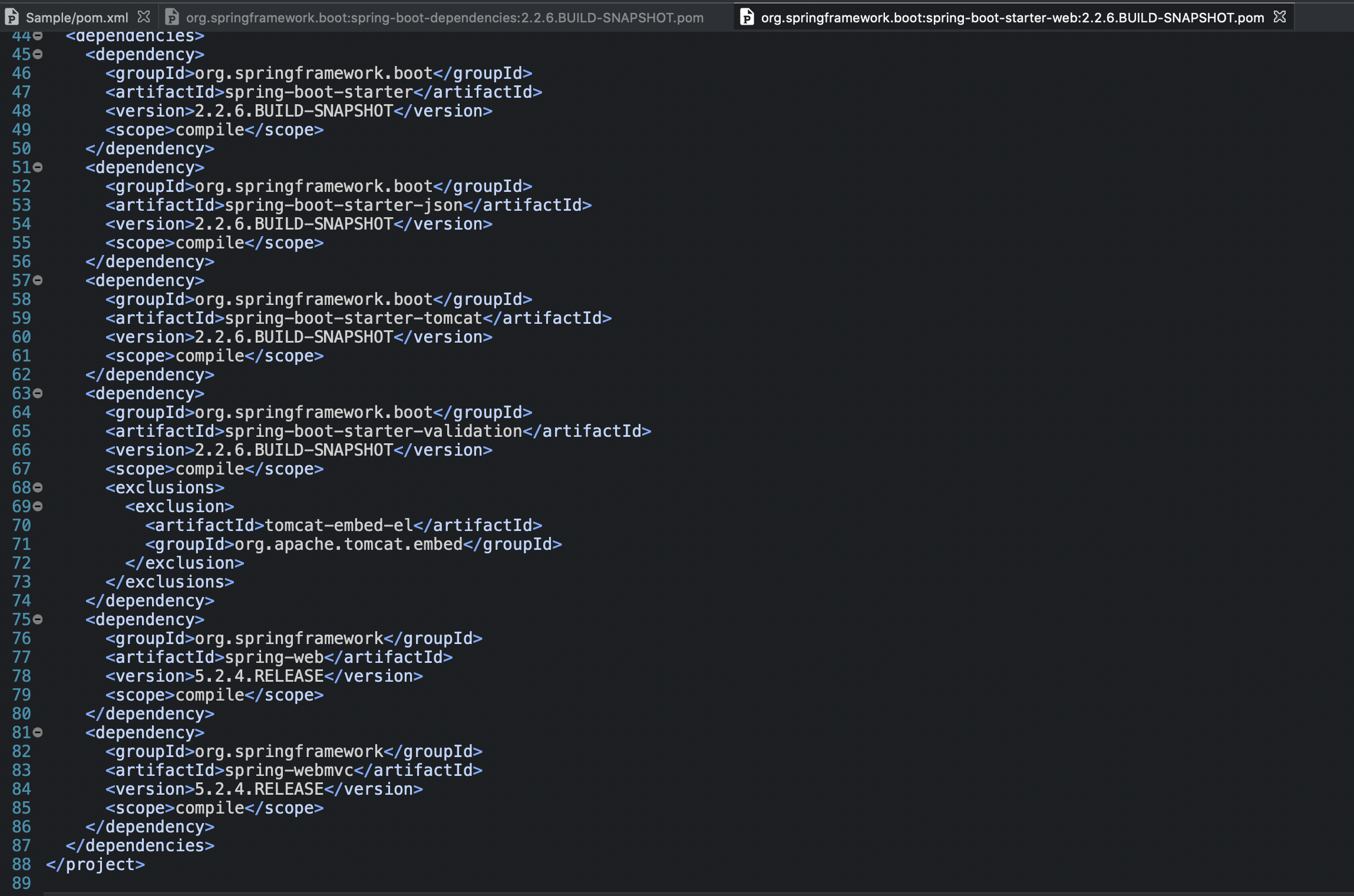 - <Ctrl> 키를 누른 상태에서 마우스를 <dependency> 설정으로 옮기고 클릭하면