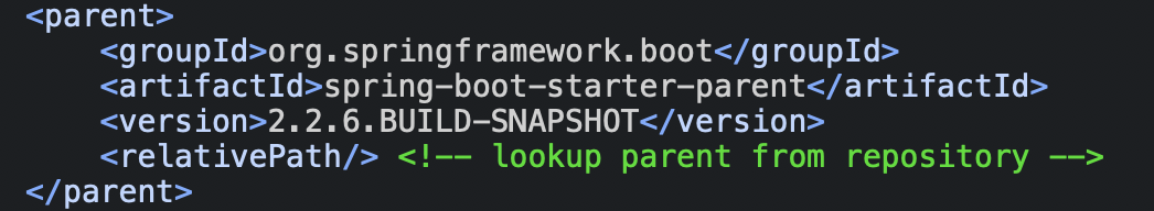 - <parent> 엘리먼트는 이름 그대로 다른 POM 설정을 부모로 지정하여 부모로 부터 모든 설정을 상속받을 때 사용한다.