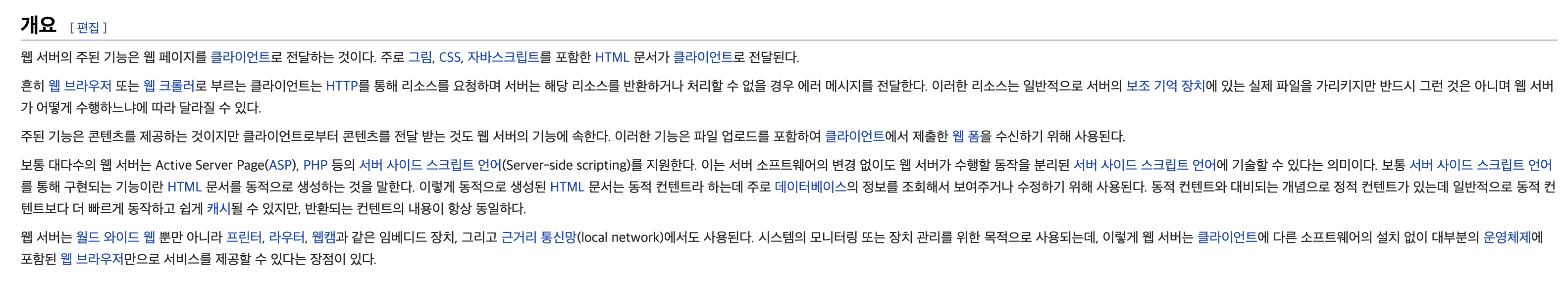 - http 웹서버는 http 요청을 처리할 수 있는 웹서버이고, Apache Http Server는 http 요청을 처리하는 웹서버이다. (클라이언트가 GET/POST/DELETE 등의 기능을 이용해 요청을 하면 이 프로그램이 결과를 응답하는 기능을 한다.)