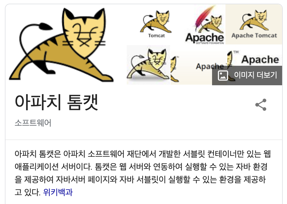 - Tomcat이 Apache의 기능 일부를 가져와서 제공해주는 형태이며, Apache와 합쳐서 Apache Tomcat이라고 부른다.