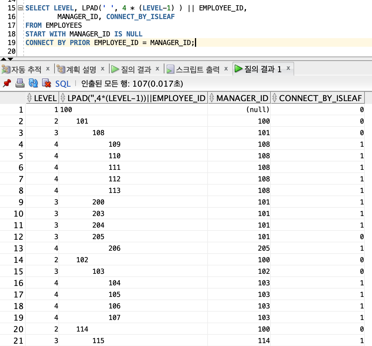 - 결과적으로 LPAD는 트리 형태로 보기 위해서 사용한 것이다.