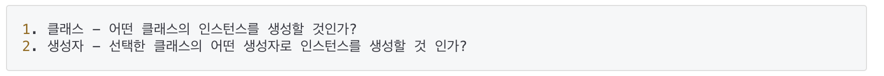 - 인스턴스를 생성할 때는 반드시 클래스 내에 정의된 생성자 중의 하나를 선택하여 지정해주어야 한다.