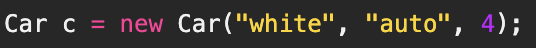 - 위 코드는 양쪽 모두 같은 일을 하지만 오른쪽의 코드는 생성자 Car(String color, String gearType, int door)를 활용해서 더 간략히 한 것이다.
