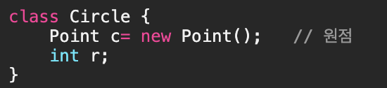 - Point 클래스를 재사용해서 Circle 클래스를 작성한다면 위 코드와 같다.