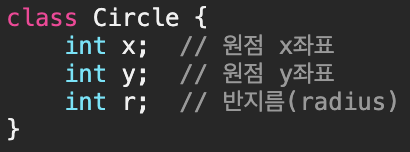 - 위 두 코드는 각각 원을 표현하기 위한 Circle 클래스와 좌표상의 한 점을 다루기 위한 Point 클래스