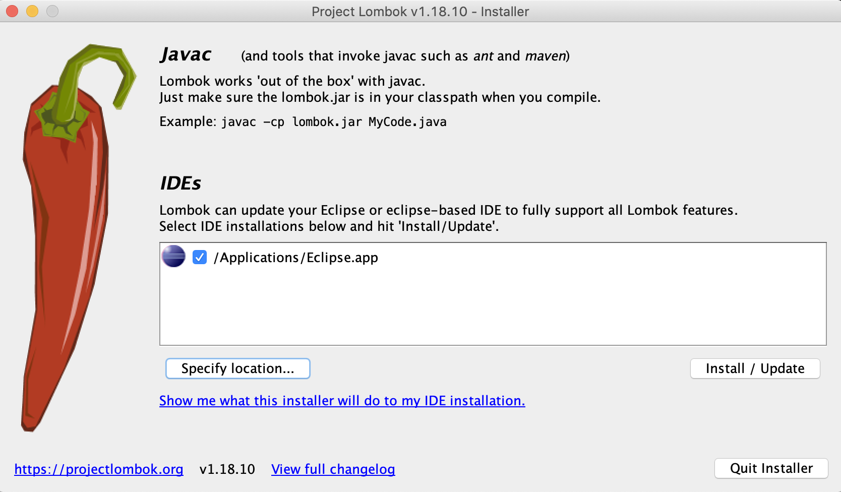 java -Dlombok.installer.fullpath -jar lombok.jar 로 다시 실행시켜준다.