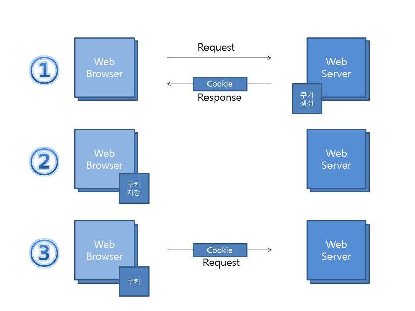 - Cookie : 웹 페이지들 사이의 공유 정보를 클라이언트 PC에 저장해 놓고 필요할 때 여러 웹페이지들이 공유해서 사용할 수 있도록 매개 역할을 하는 방법이다.