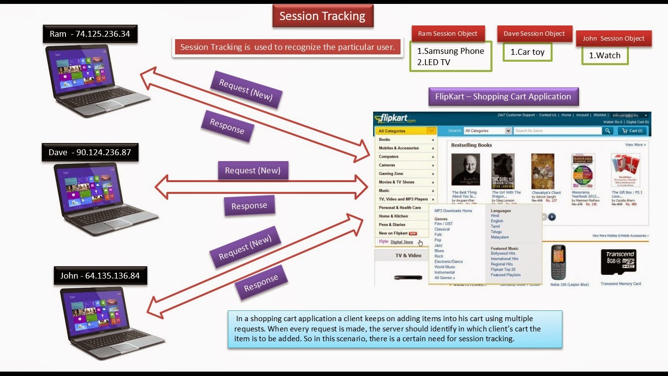 이 때, 모든 요청이 생성될 때 마다 서버는 물건이 담기는 사용자를 식별해야만 한다. 따라서 SessionTracking이 필요하다.